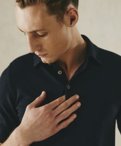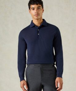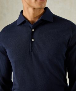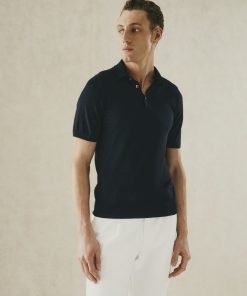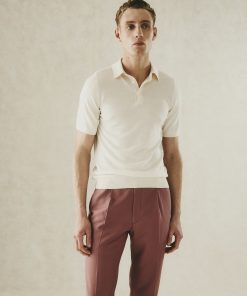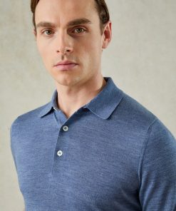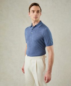 Gieves and Hawkes Men’s Dicken Short Sleeve Merino Wool Silk & Cashmere Polo Knit Light Blue