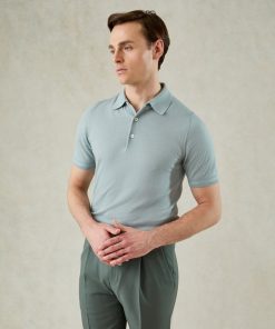 Gieves and Hawkes Men’s Dicken Short Sleeve Merino Wool Silk & Cashmere Polo Knit Mint Blue