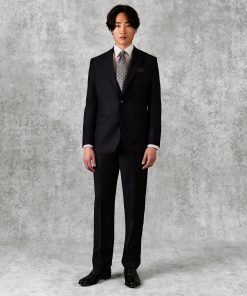 Gieves and Hawkes Men’s Shelford Wool Mohair Barathea Peak Lapel Dinner Suit Black