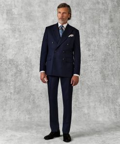 Gieves and Hawkes Men’s Churchill Double Breasted Suit Navy Morse Code Flannel