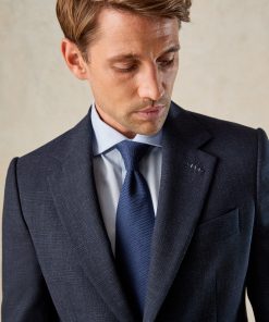 Gieves and Hawkes Men’s Churchill Single Breasted Suit Navy Morse Code Flannel