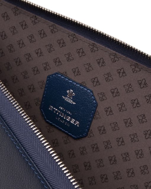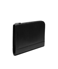 The Large Zip Portfolio is an elegant and stylish leather case, perfect for business as well as leisure. Carry the soft grained portfolio under your arm or in your hand. The pouch fits perfectly any A4 size documents, a slim laptop, iPads and your other essentials. Use the side slip pocket inside to have everything organised. The zip-around is perfect for keeping all contents safely within and the gusseted pocket gives easy access. The leather exterior marries perfectly with the silvery grey jacquard fabric inside, and the leather patch with Ettinger logo gives the whole item a lovely finish. Goat leather has natural lanolin present that deters dirt from penetrating the leather easily. Before using your portfolio please read the care instructions carefully to make sure it continues to look beautiful, as misuse can age the leather prematurely.