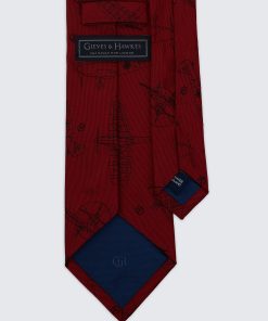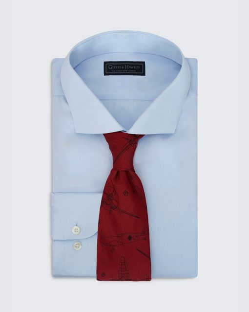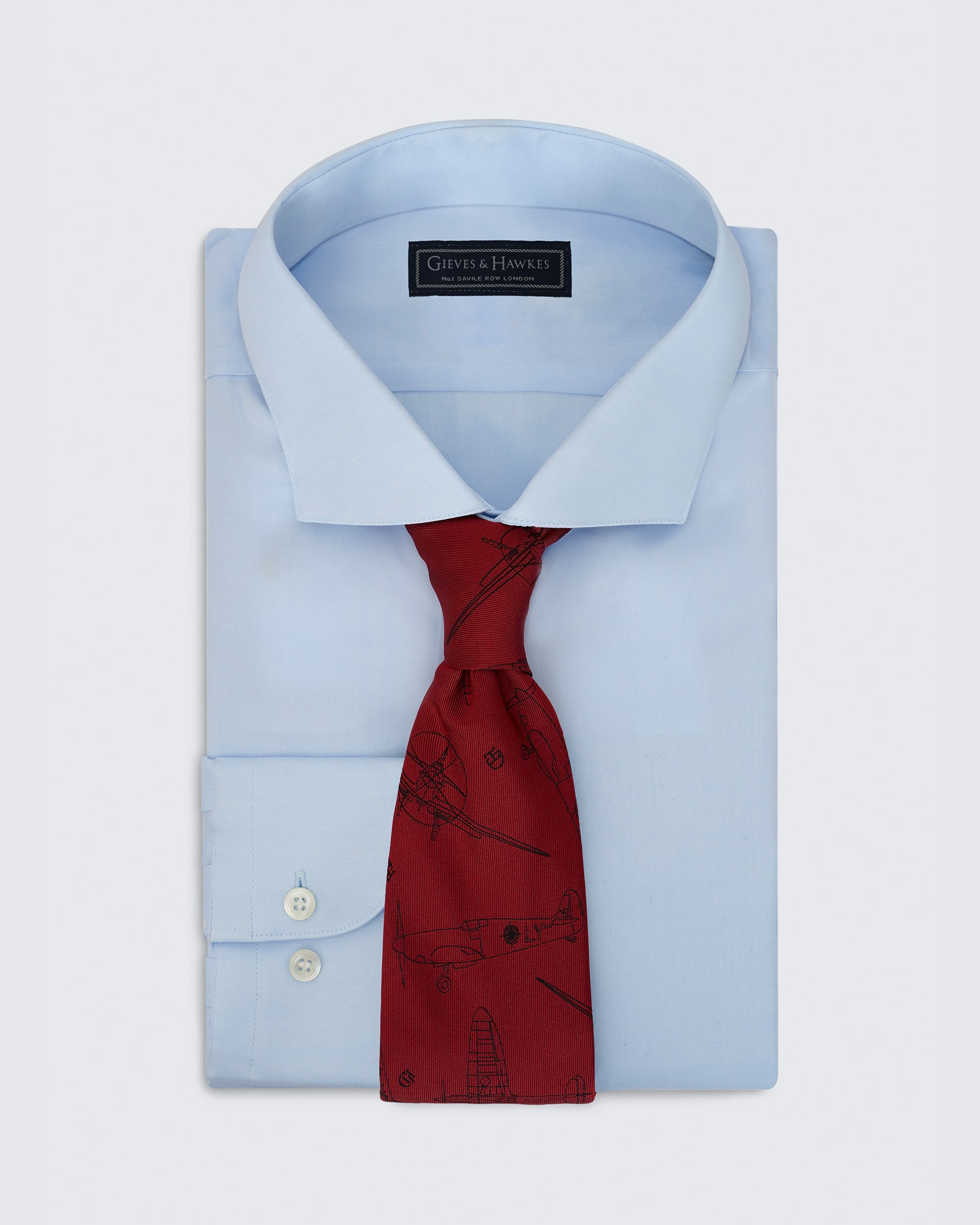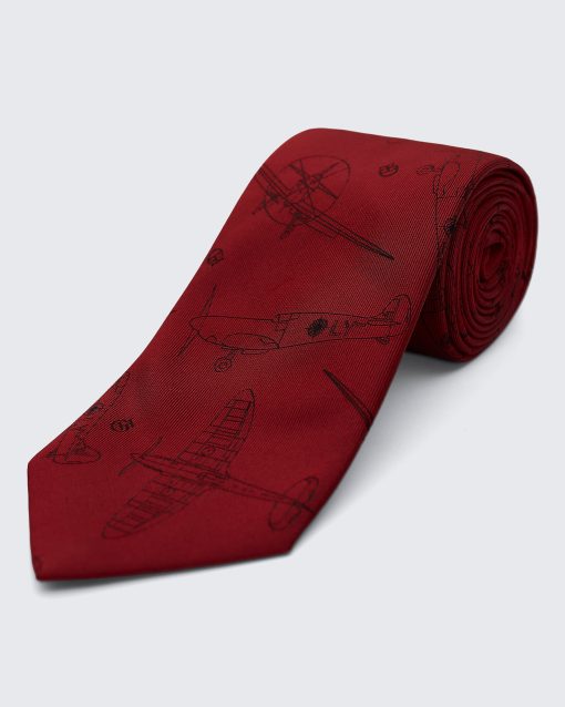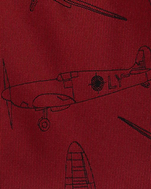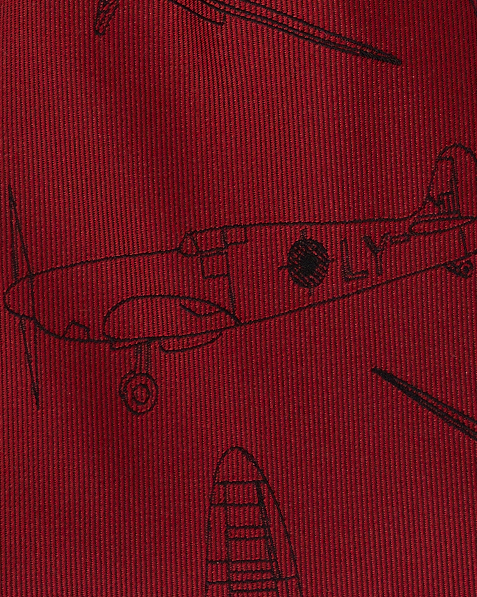The Carberry RAF Plane Tie in Red is hand-woven in England from 100% silk, featuring a distinctive aircraft motif inspired by RAF heritage. Bold yet refined, it adds a unique touch of character to classic tailoring.