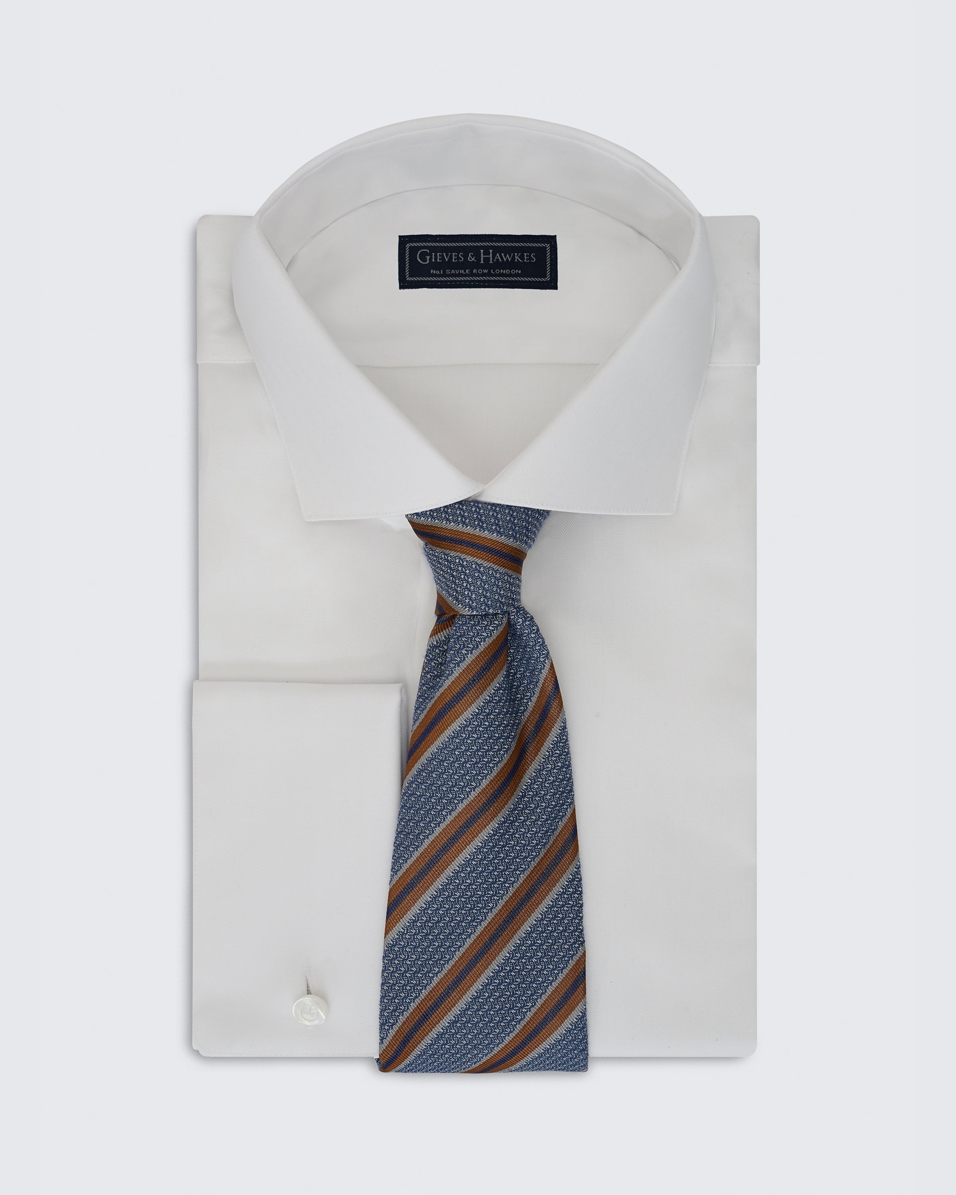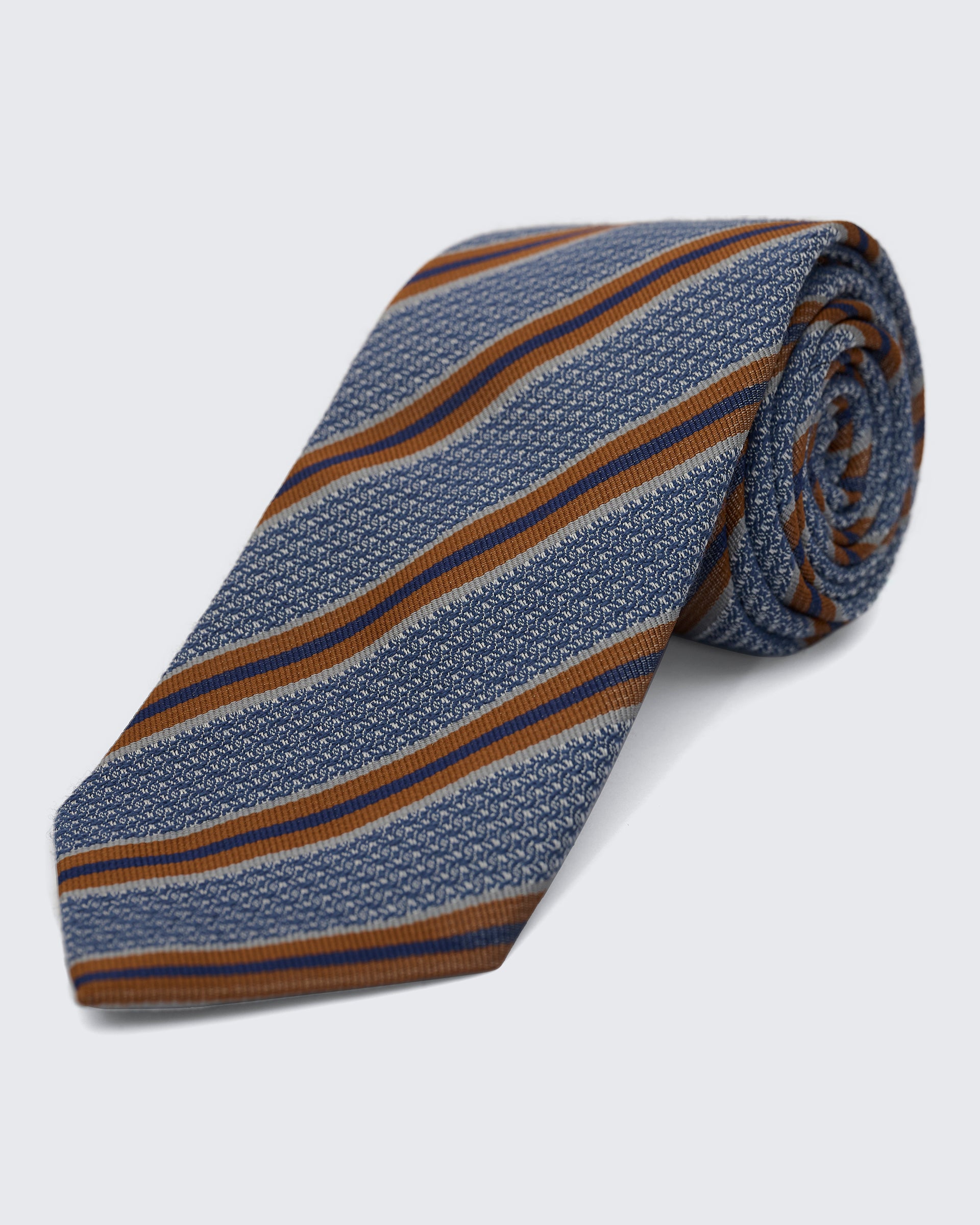 Gieves and Hawkes Men’s Carberry Silk & Wool Brown & Blue Stripe Tie