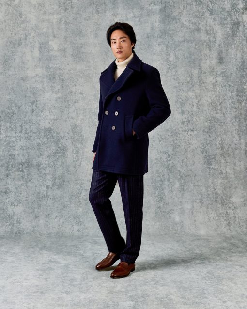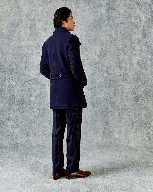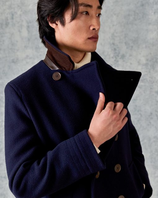 Indulge in the timeless elegance of the Croft Bridge Coat, a distinguished piece from our AW24 Collection. Crafted from 100% Wool, this peacoat features meticulous detailing, including a Martingale belt at the back for a refined, tailored silhouette, and tonal topstitch lines on the cuffs and hems mirrors the stripes on naval officers’ uniforms. This subtle nod to deep naval history, symbolized by the rope motif, is one of our house codes, woven throughout our collections.