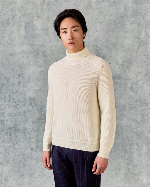 Gieves and Hawkes Men’s Denison Chunky Knit Roll Neck Ecru