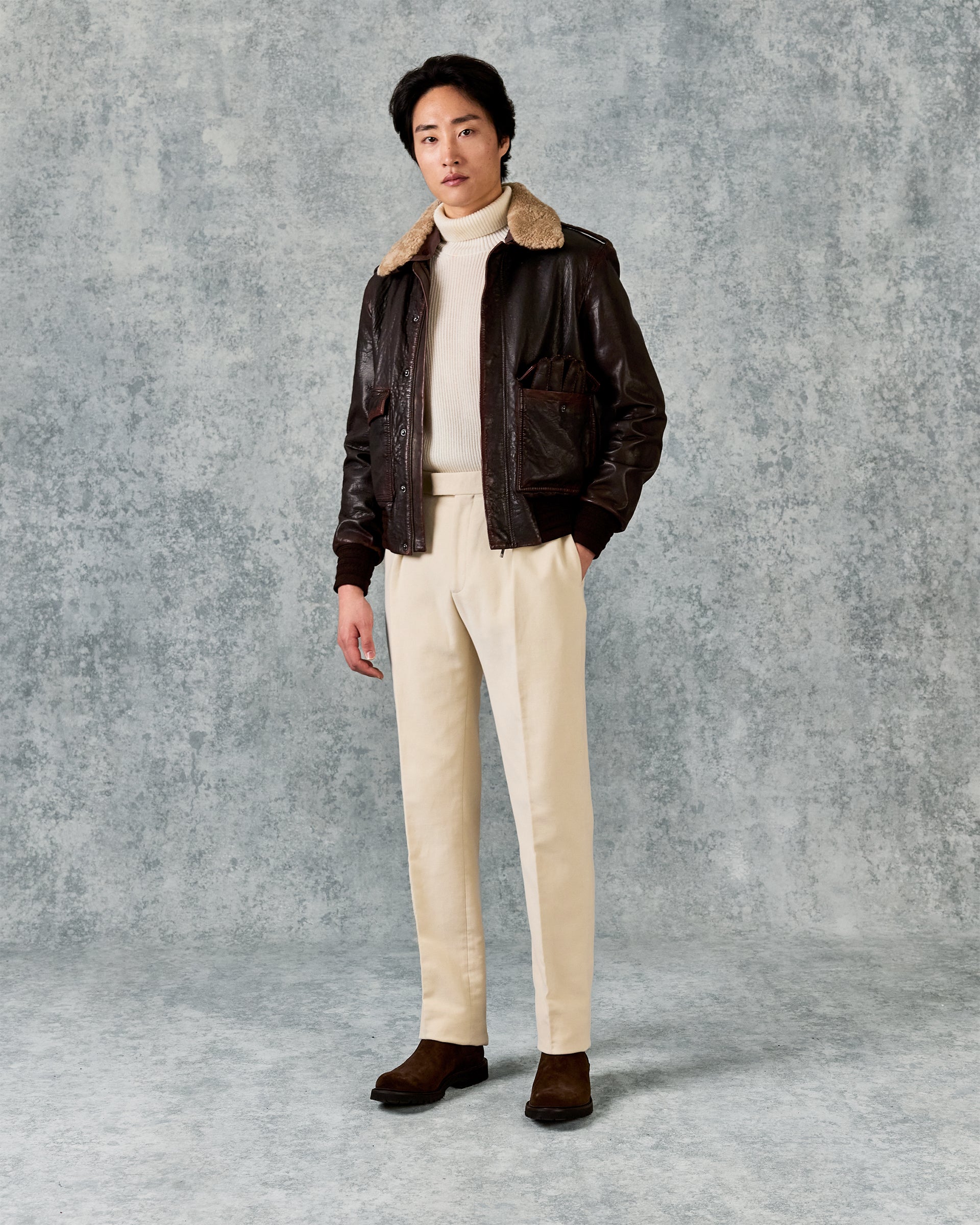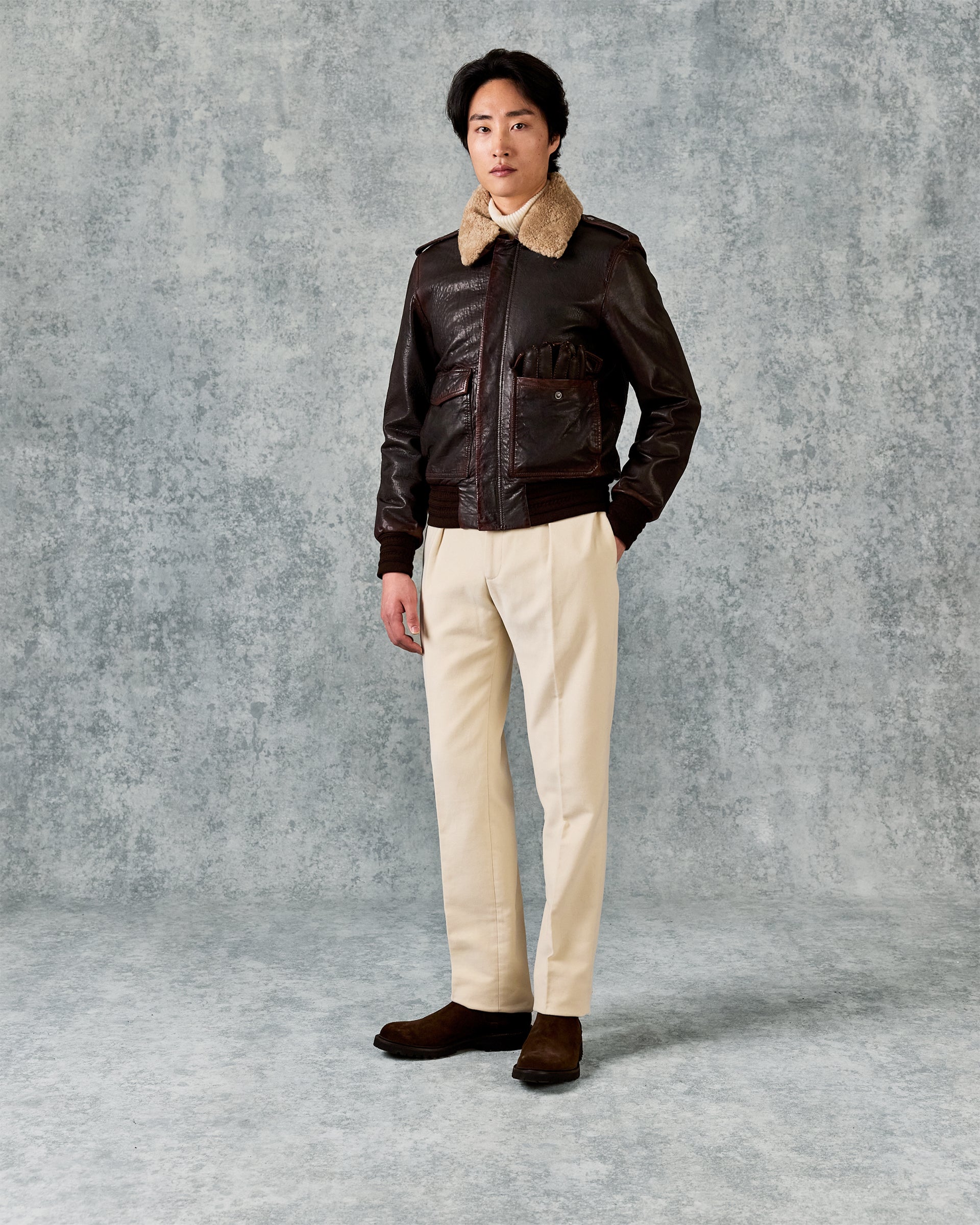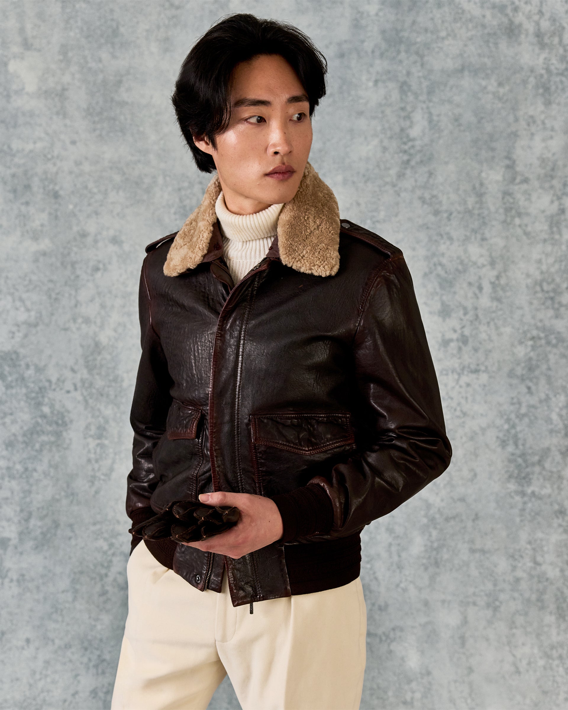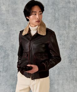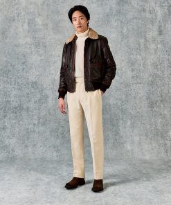 Gieves and Hawkes Men’s Dick Leather Aviator Jacket Brown