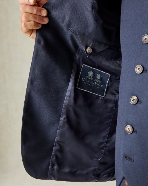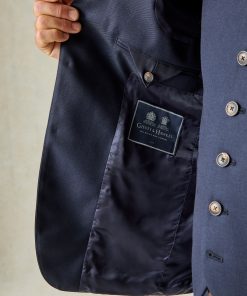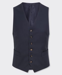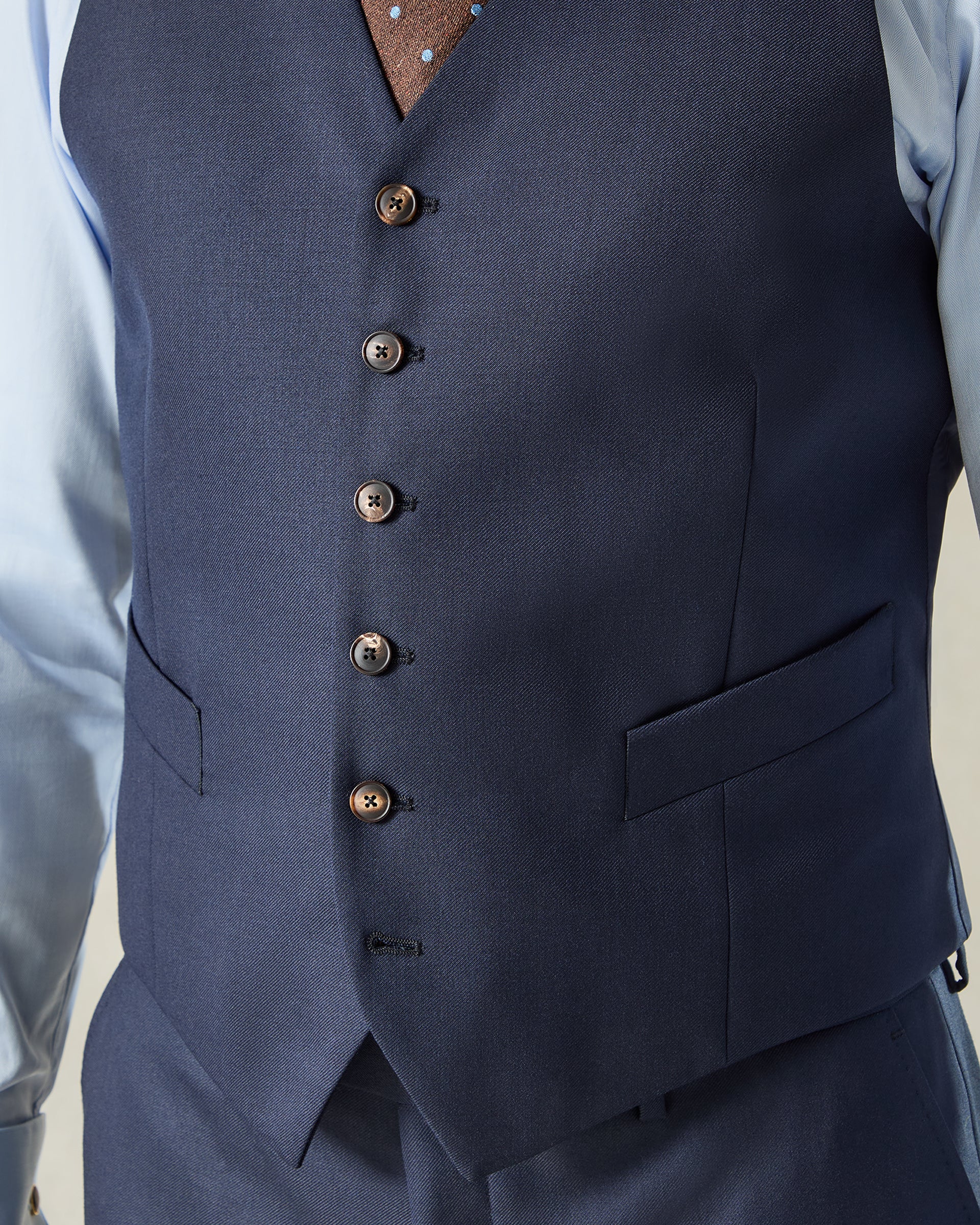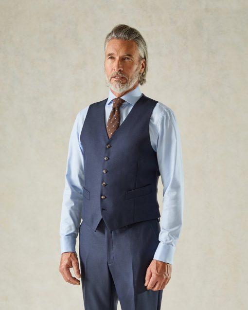 The Doughty Suit Waistcoat in Navy features a single breasted six-button profile two slanted welt pockets. The back and martingale are impeccably and decorated with luxurious horn buttons.