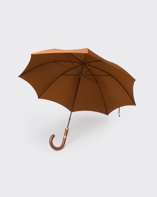 Gieves and Hawkes Men’s Fielding Umbrella With Wooden Handle Mid Brown