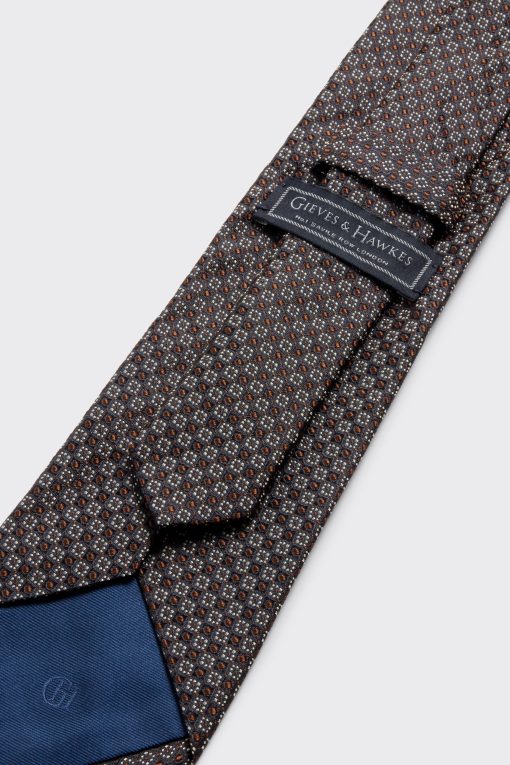 Gieves and Hawkes Men’s Formal Dress Carberry Silk Tie Dark Small Floral Brown