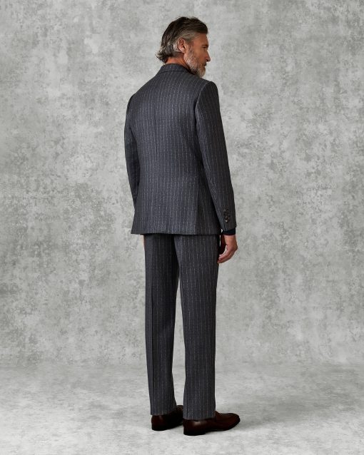 The Gunn Suit Jacket in Grey Morse Code Flannel is tailored from premium Italian wool with a touch of cashmere for softness and structure. Featuring roped shoulders, dark horn buttons, and refined detailing, it’s a modern classic built for effortless sophistication.