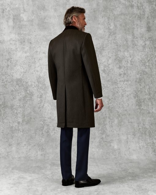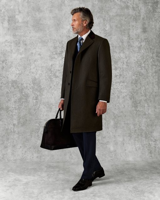The Hall Covet Coat in Khaki Twill is crafted from Italian-made fabric with a rich blend of virgin wool and technical fibers for structure and comfort. Featuring refined elephant flap pockets and a blind fly front, it’s a modern outerwear piece with classic character.