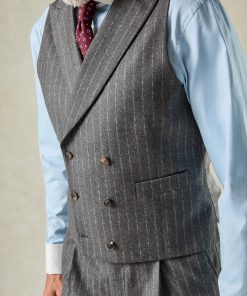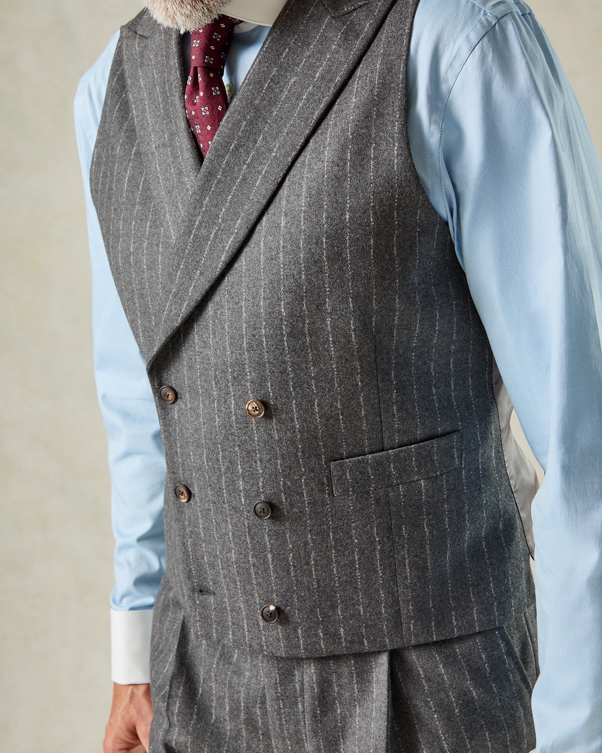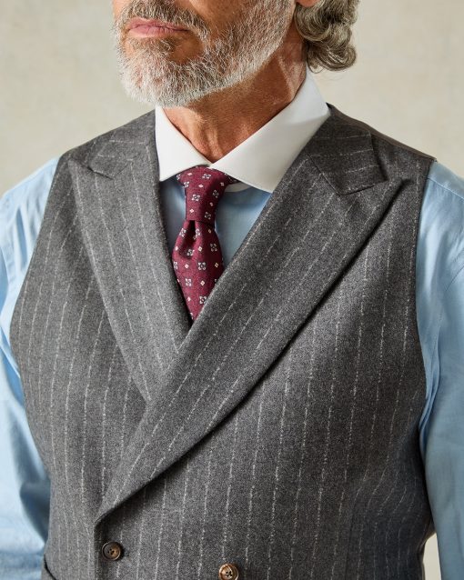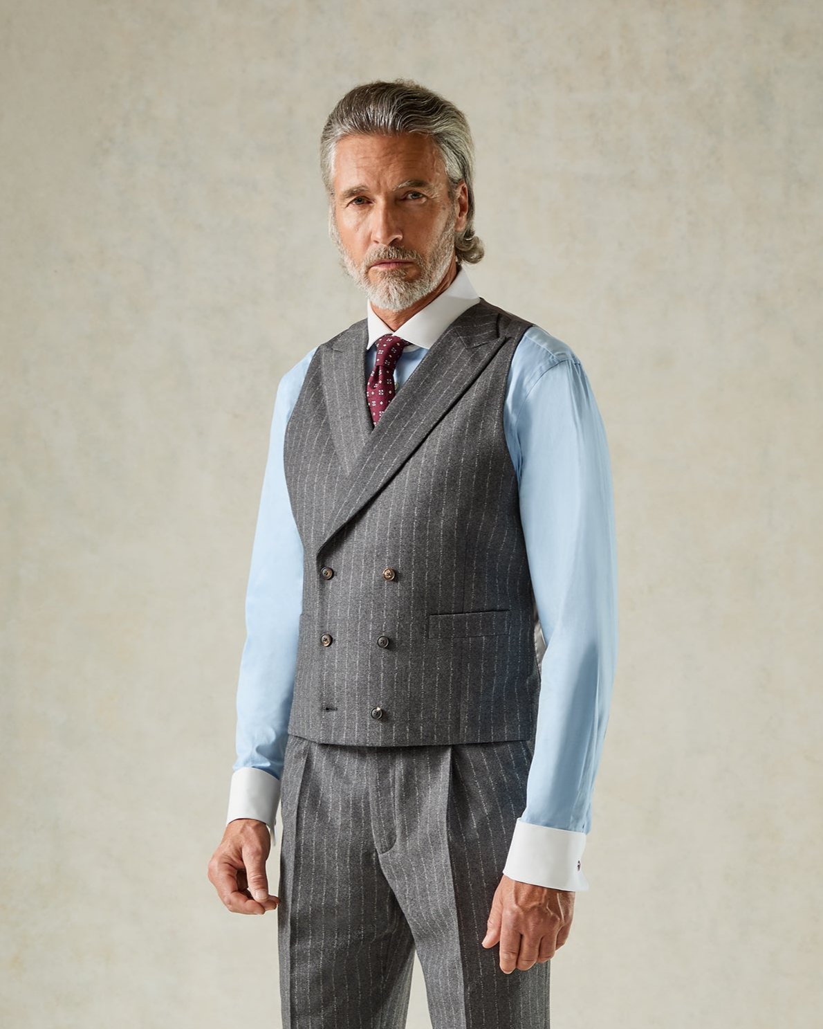 Gieves and Hawkes Men’s Markham Wool & Cashmere Morse Code Stripe Suit Waistcoat Grey