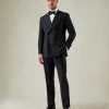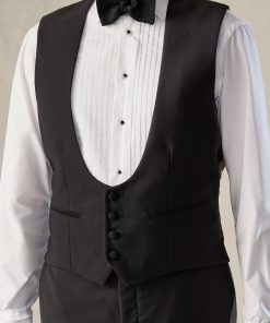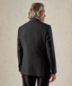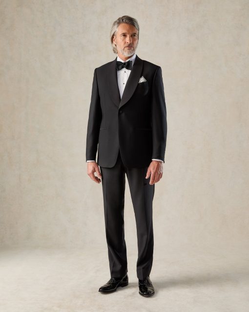 This three-piece suit is a masterful blend of timeless elegance and modern craftsmanship, featuring a tailored jacket with grosgrain lapels, an Austrian button closure, and sleek jet pockets for a refined silhouette. The waistcoat, with its single-breasted, four-button design and horseshoe front, adds a contemporary touch while maintaining classic sophistication. Complementing the ensemble, the flat-front trousers offer side adjusters for a perfect fit and a subtle grosgrain stripe for added luxury. Crafted from premium fabrics sourced from the esteemed Dugdale Bros mill, this suit is perfect for formal occasions, exuding both comfort and impeccable style.