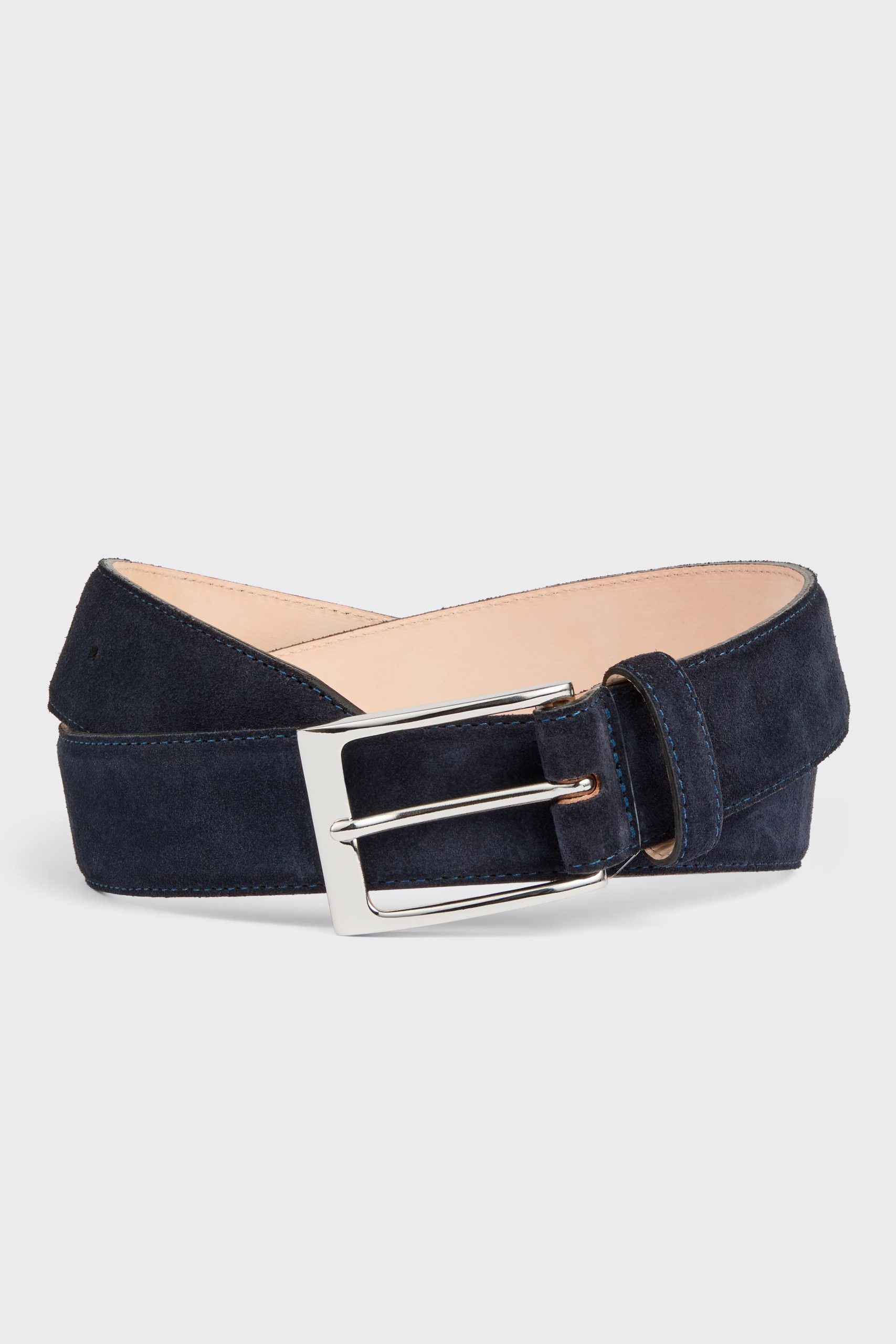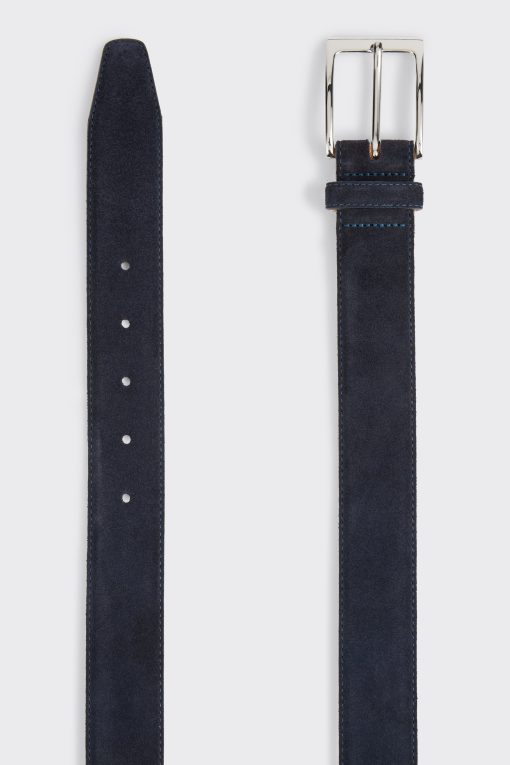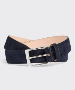 The Theed Belt in Navy Suede by Gieves and Hawkes epitomizes refined luxury, perfect for those seeking a touch of sophistication in their formal attire. Crafted with meticulous attention to detail, this belt features a premium tan suede finish, complemented by a sleek silver rectangle buckle. Tailored with precision to fit your waist, it stands out with its elegant design and superior quality.